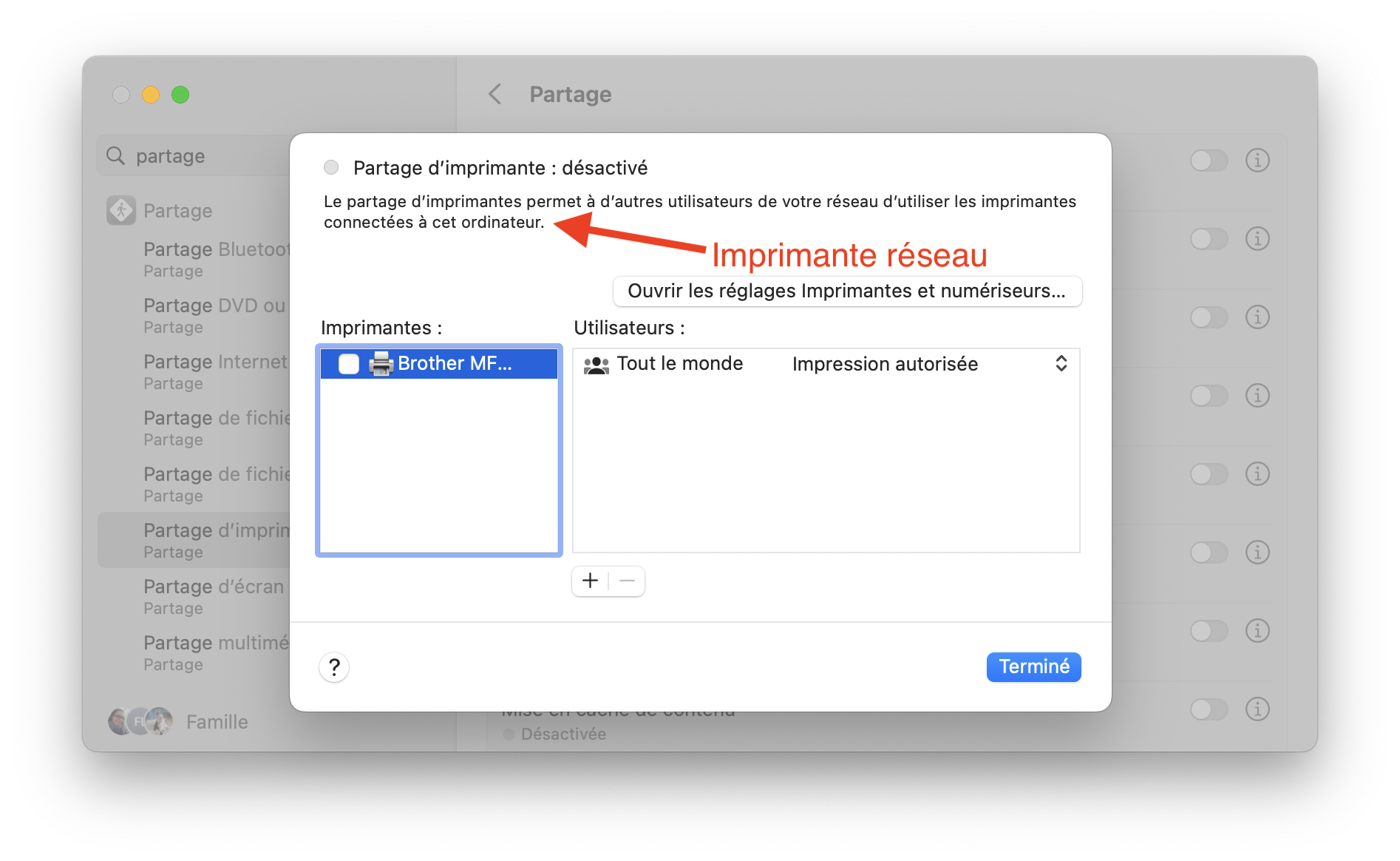 Opération qui te permettra d'utilise l'imprimante branché sur ton vieux iMac (mais qui l'oblige d'être allumé pour pouvoir imprimer (mais bon)) comme une imprimante réseau
