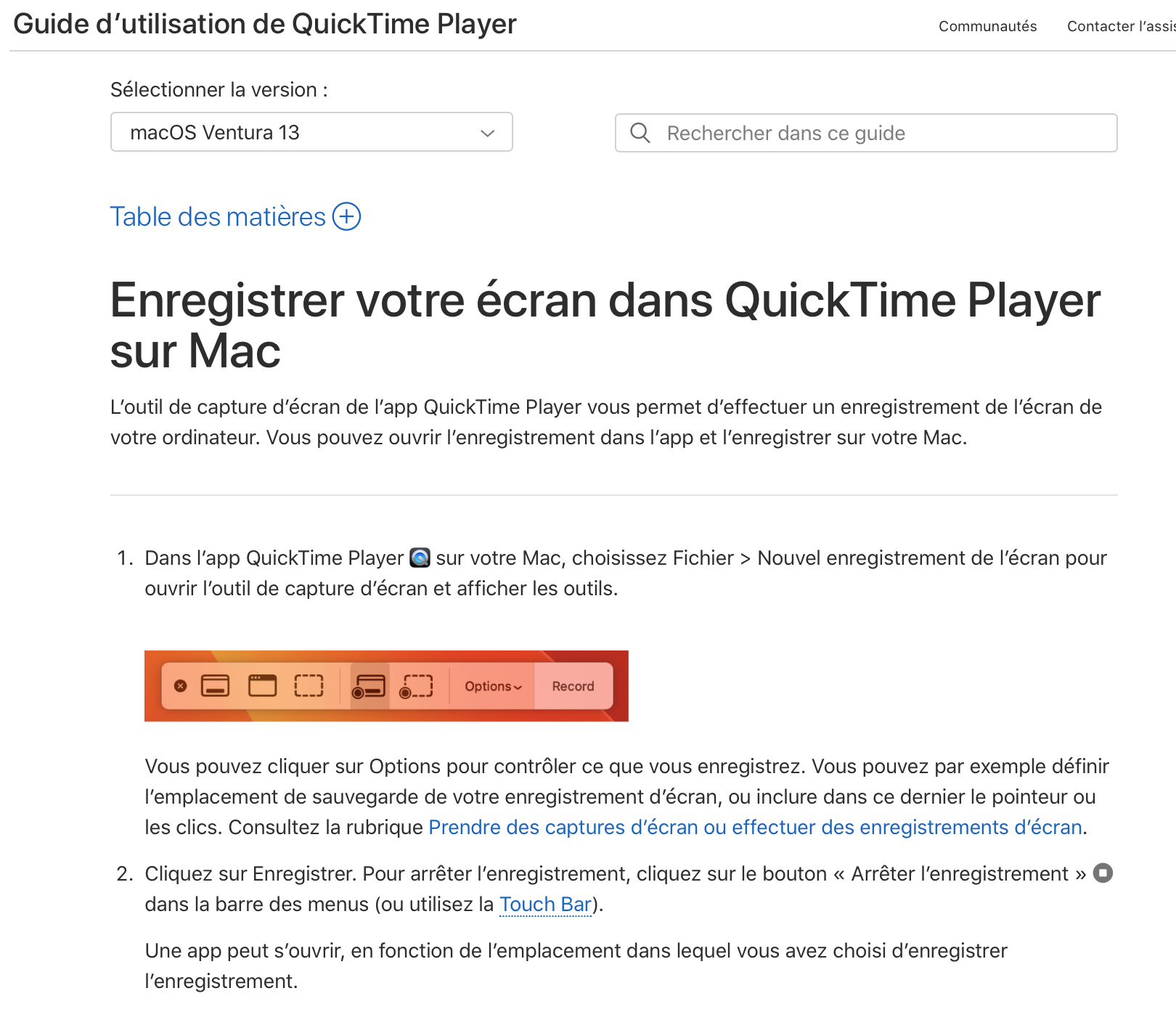 Merci à qui me donnera la procédure à suivre pour capturer une vidéo sur l'écran avec QuickTime Player. Je n'y arrive plus depuis que je suis sous Ventura 13.4.1 avec un Mac mini 2