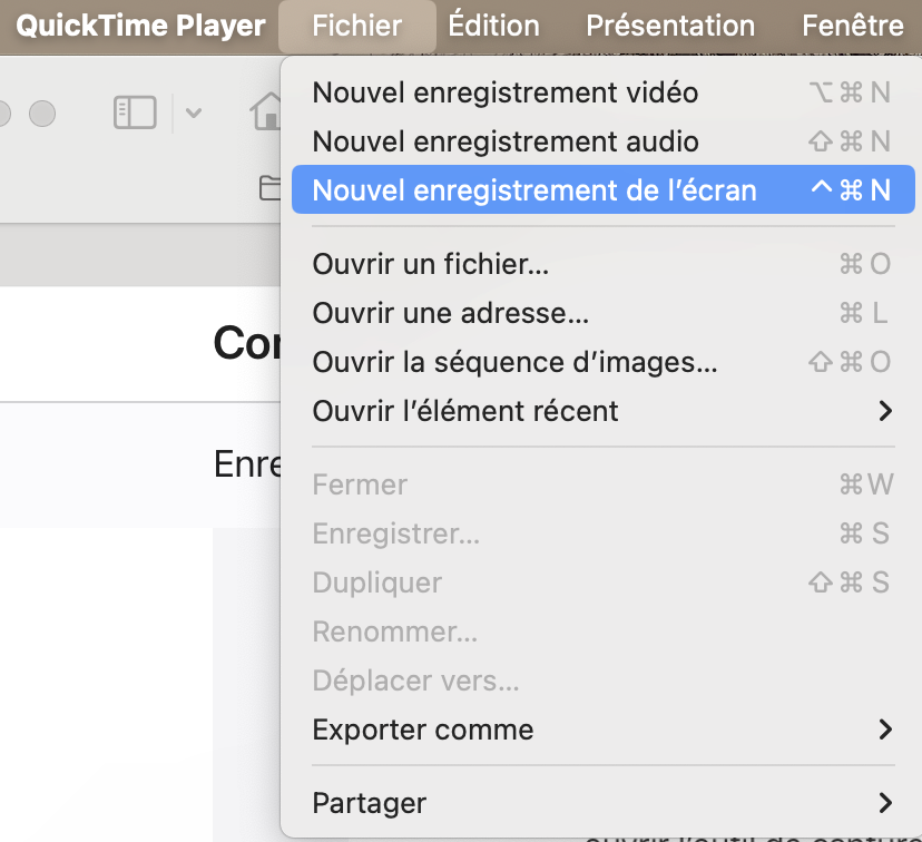 Enregistrement vidéo capture d'écran QuickTime Player Mac