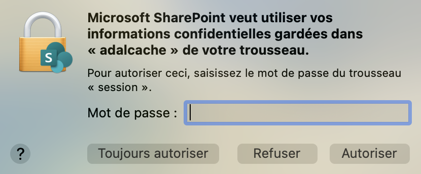 Concernant ces messages, est-ce que tu rentres ton mot de passe de session et choisi une option comme Toujours autoriser ou Refuser, mais il revient tout de même ?