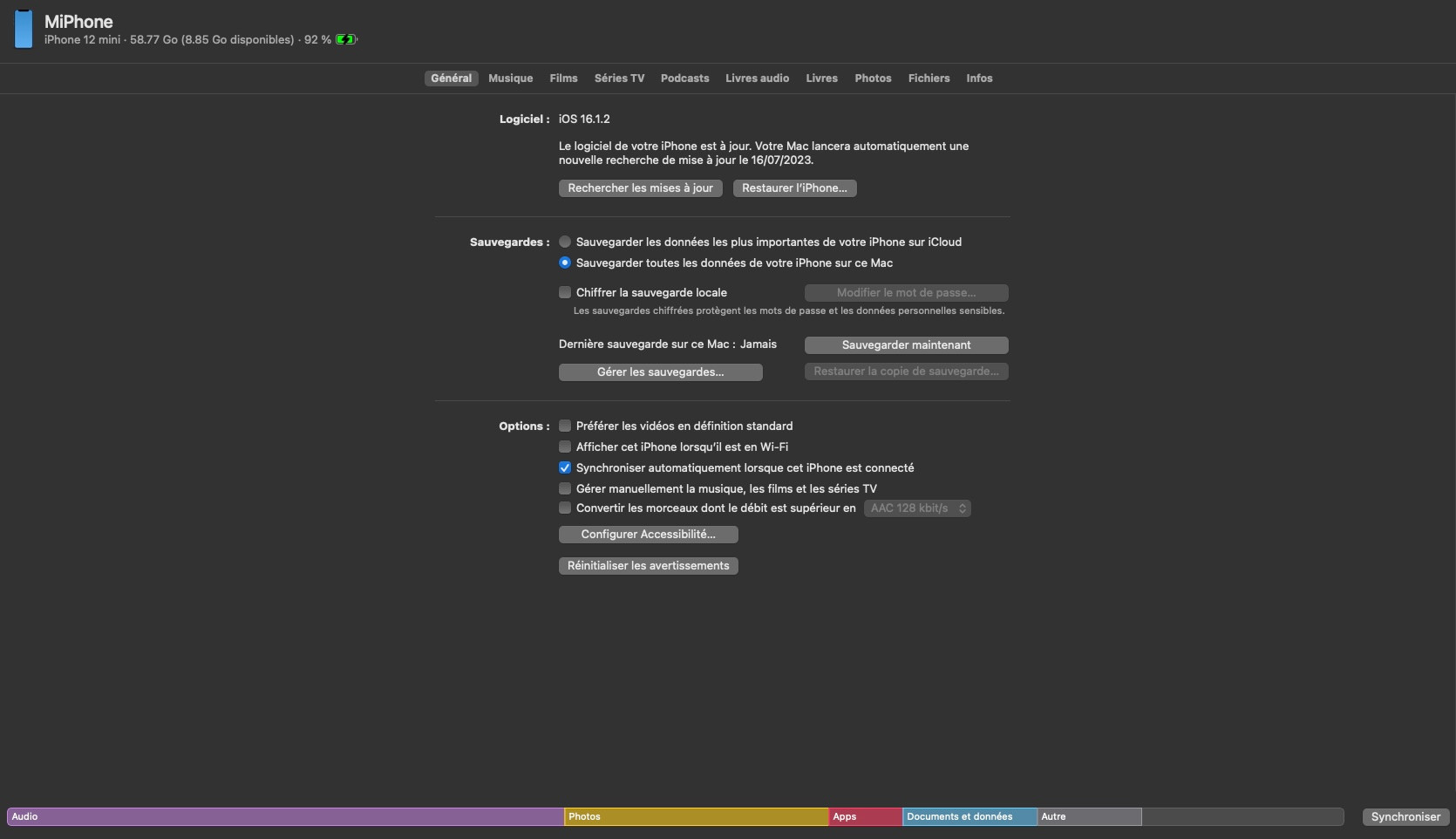 Et lorsque je branche l'iphone au Mac, dans le Finder j'ai un onglet mais à aucun endroit je ne vois Sonneries comme avant et j'ai beau chercher dans les différents onglets sans succès.