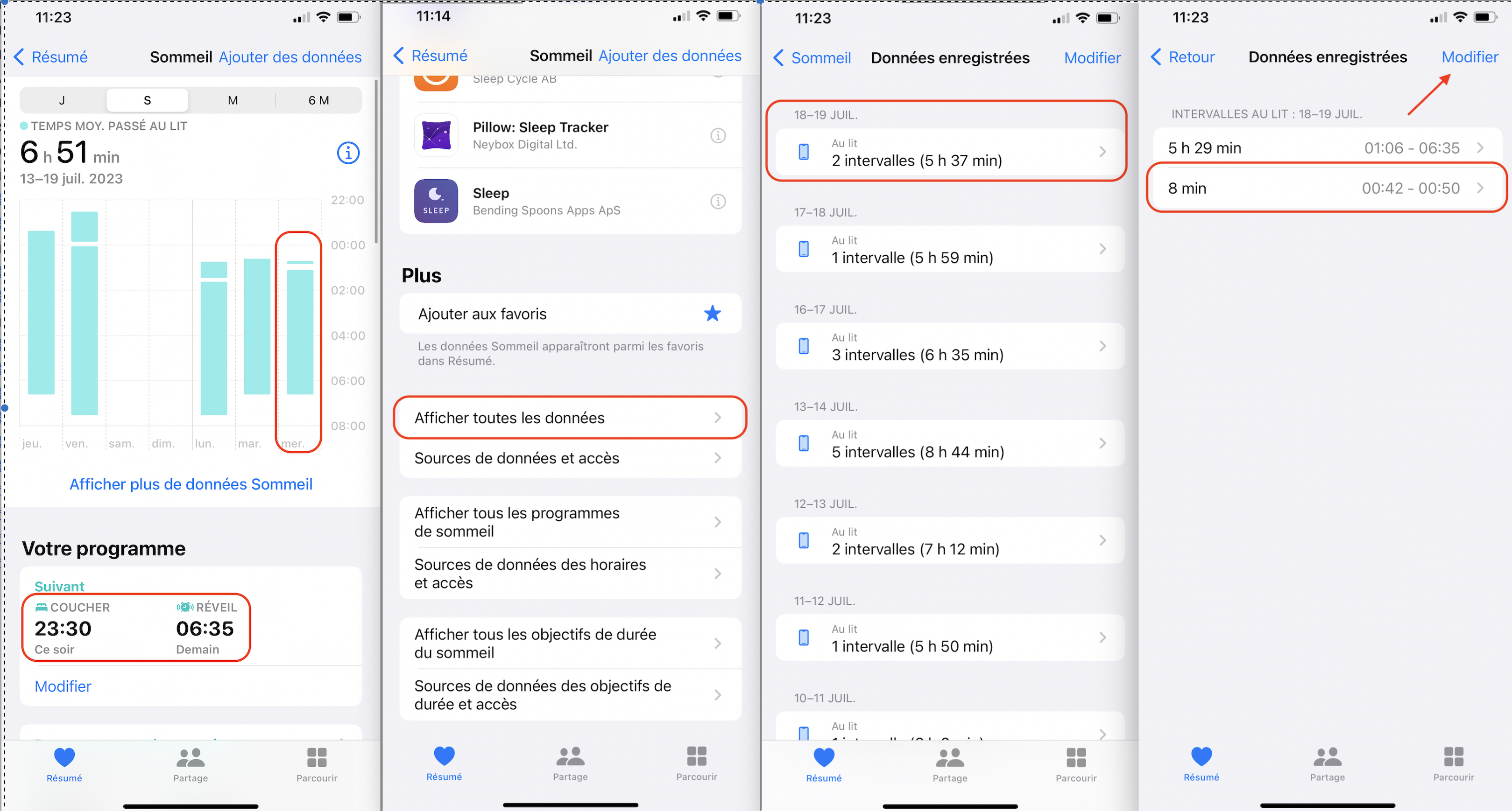 Hier j'ai passé bcp de temps en voiture en soirée, de 20h à 0h30, certes je n'ai pas bcp bougée mais j'étais assise. Mon heure de coucher programmée sur la fonction sommeil est à 0h30. De 0h30 à 1h15 je n'étais pas couchée, mais debout à faire du rangement etc. Ensuite je me suis couchée à 1h15. Aujourd'hui mes données sommeil indiquent que je suis restée au lit en continu de 20h30 à 7h30 ! je ne comprends pas pourquoi, j'aimerais bien corriger les données mais cela semble impossible ? j'ai une apple watch SE2