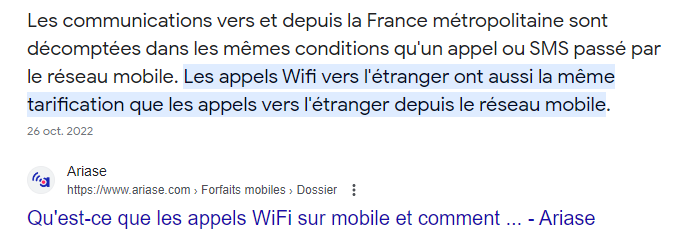 La capture d'écran que tu nous partages concerne la fonctionnalité Appels Wi-Fi. Celle-ci permet de passer ou de recevoir des appels téléphoniques via un réseau Wi-Fi lorsque tu te trouves dans une zone peu ou pas couverte par un réseau de données mobiles. Cette fonctionnalité dépend de ton opérateur et il faudra donc voir avec lui s'il la propose et si elle entraîne des frais supplémentaires. Tu trouveras plus d'informations à ce sujet sur l'article Passer un appel à l’aide de la fonctionnalité Appels Wi-Fi - Assistance Apple (FR).