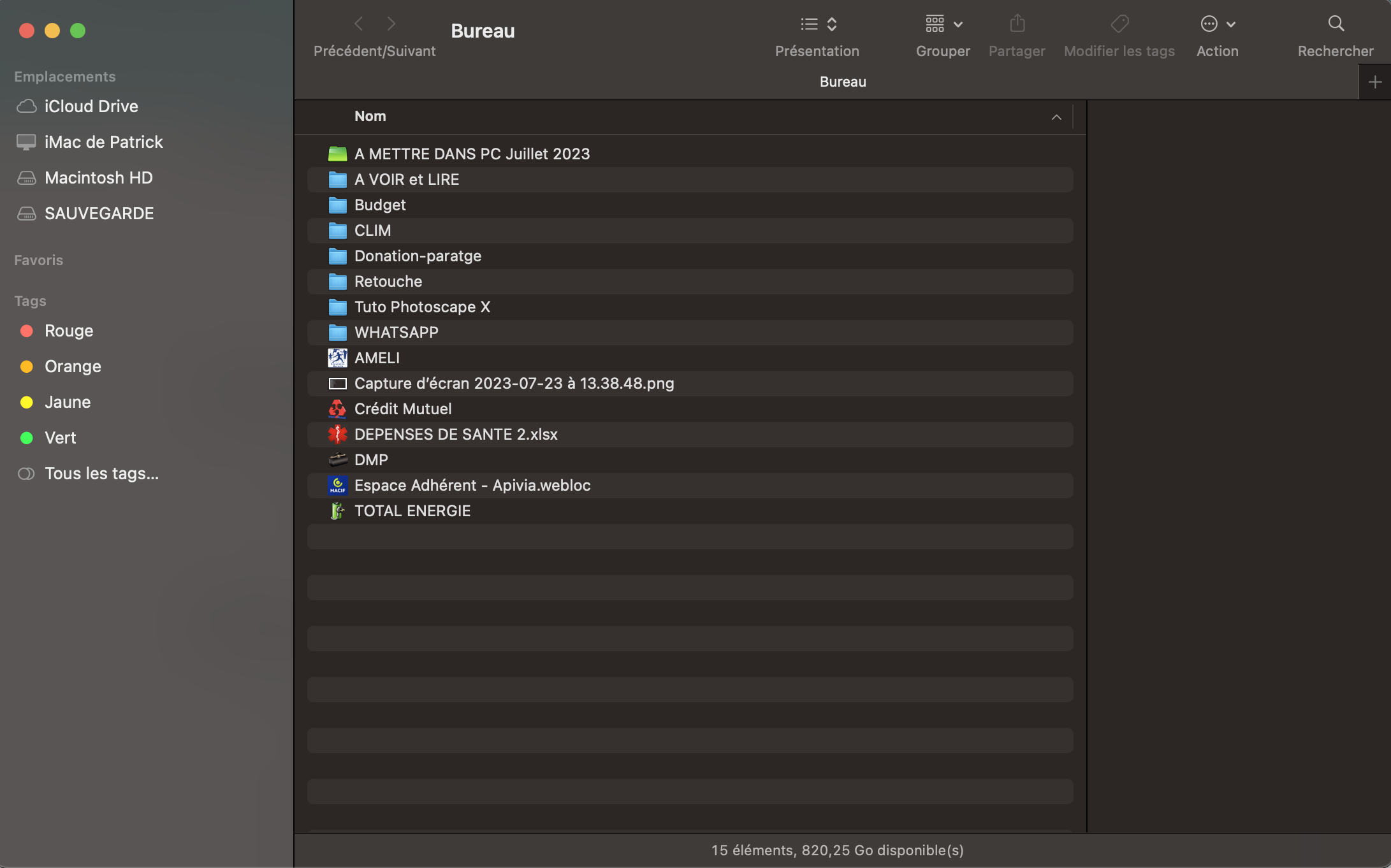 Par contre, quand je vais dans la barre des tâches, en haut, sur "Aller" le menu déroulant affiche tout.