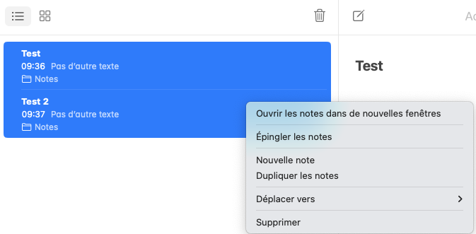 - Dupliquer ces notes ou dossiers de notes, et déplacer les copies dans la rubrique "Sur mon Mac"