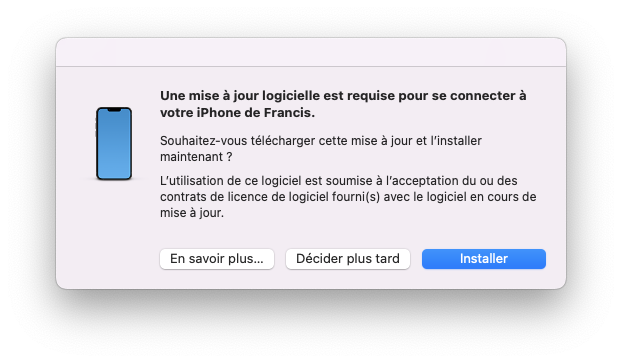J'ai ces message lorsque je connecte mon iphone 14 à mon macbook pro ?