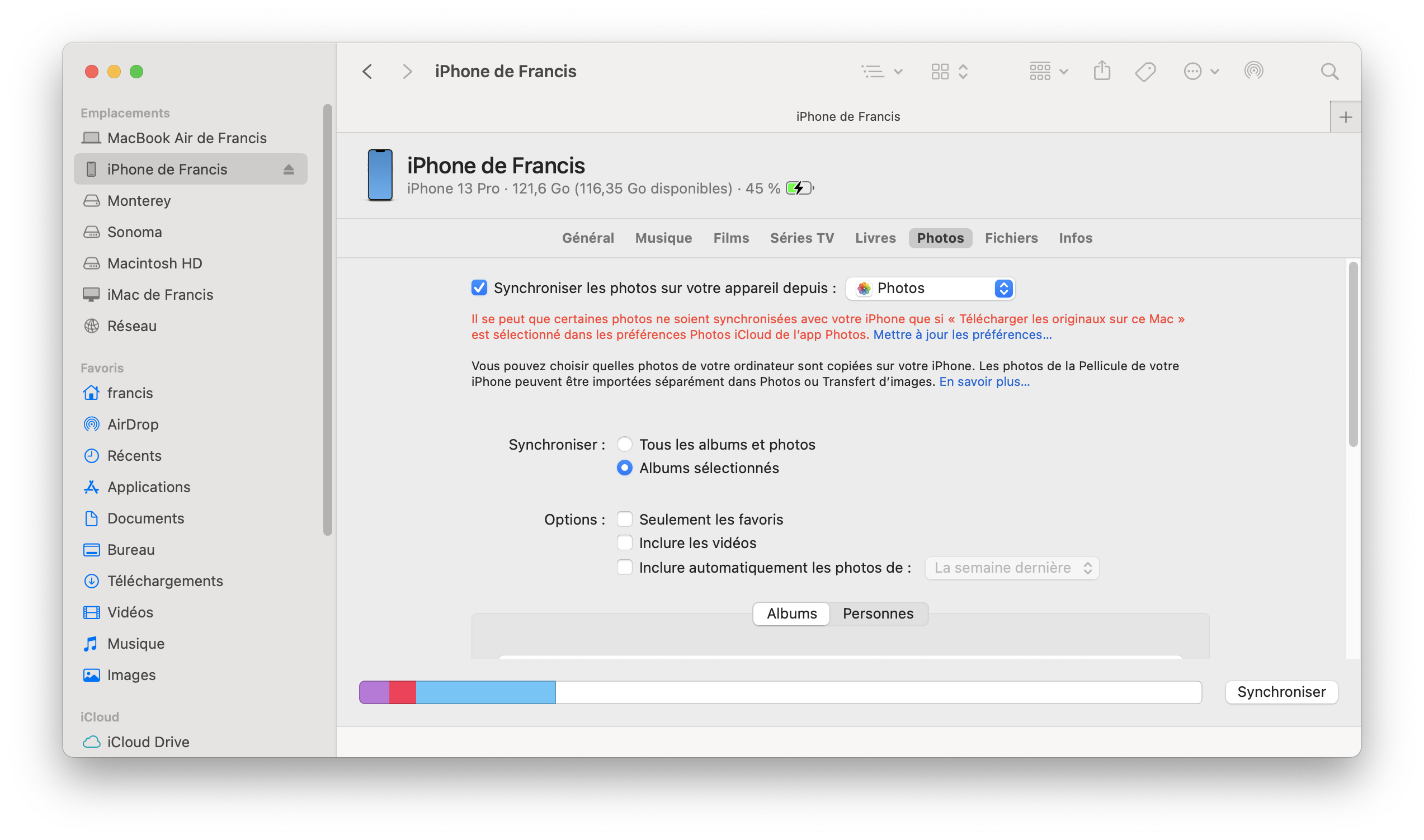 Syncroniser seulement mes albums partagés ?