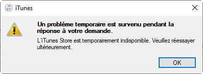 L’iTunes Store est temporairement indisponible. Veuillez réessayer ultérieurement."