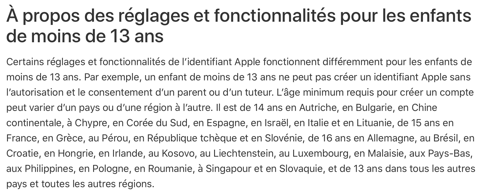 (Source : Créer un identifiant Apple pour votre enfant - Assistance Apple (FR))