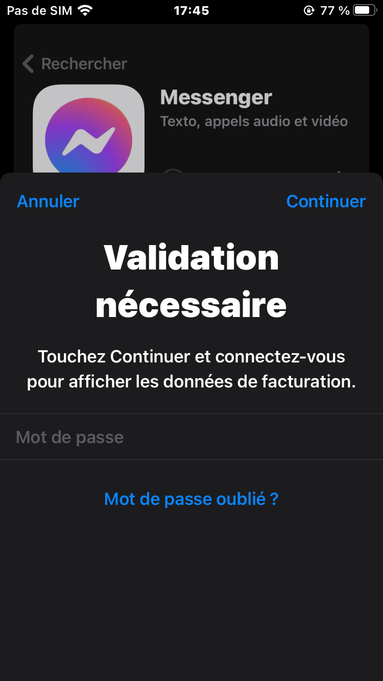 Est-ce que tu as vérifié les données de facturation de ton compte App Store comme te l'indique le message ?