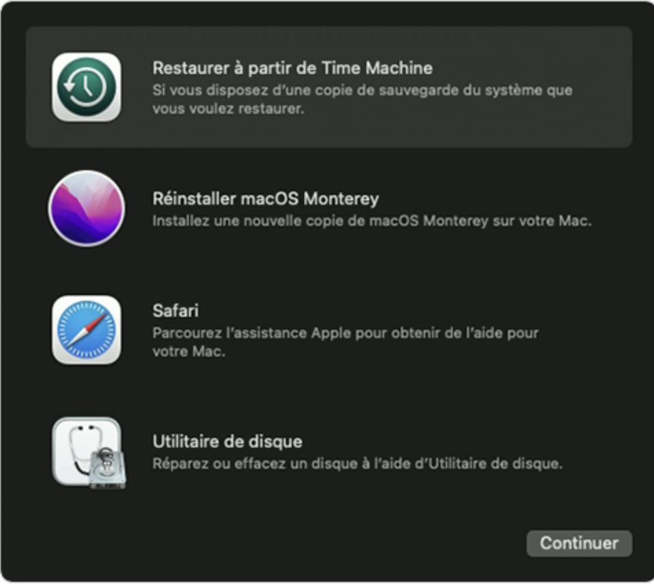 3- Maintenez ces touches appuyés jusqu’au moment où vous voyez l’écran de restauration :