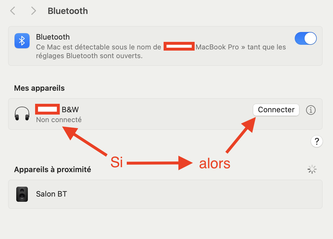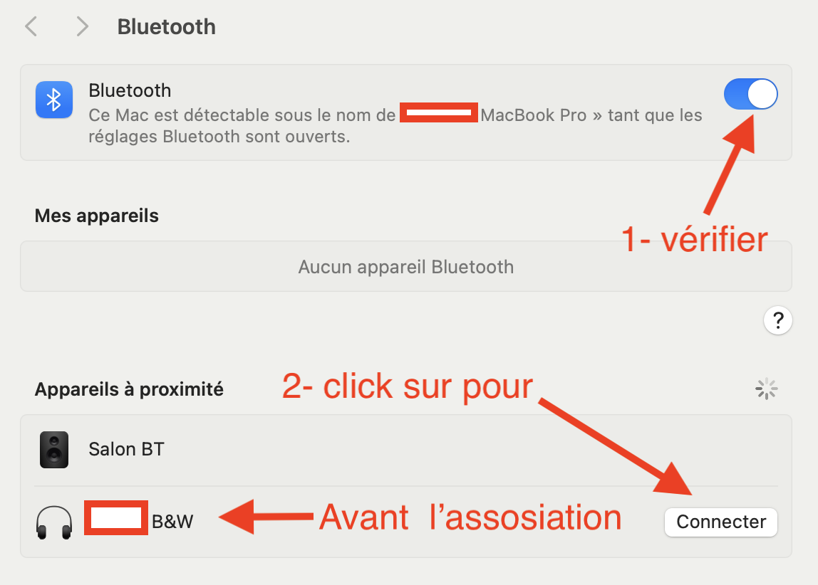 Vous devez suivre la même procédure d'appairage (connexion) sur votre MacBook Air que vous avez fait sur votre iPhone