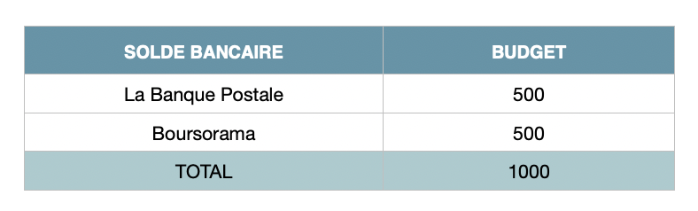 En prenant comme exemple les dépenses Boursorama, un calcul à la main serait le suivant : 500-56-56-4-2-1