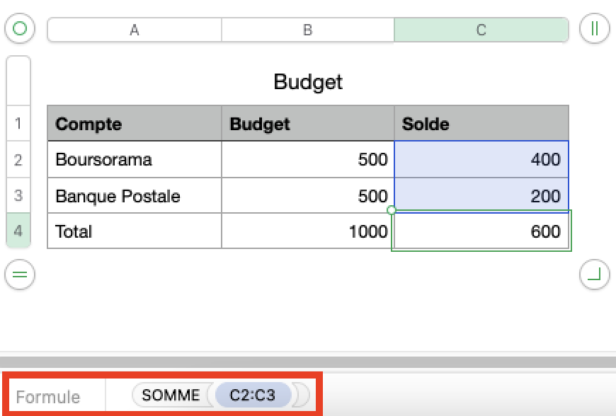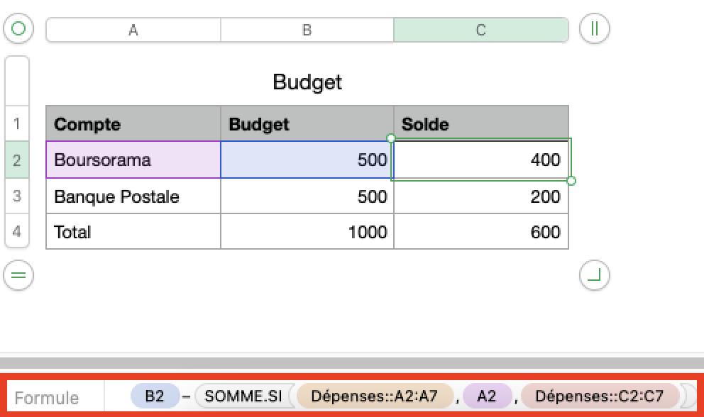 Calcul solde carte bancaire dans Numbers Mac