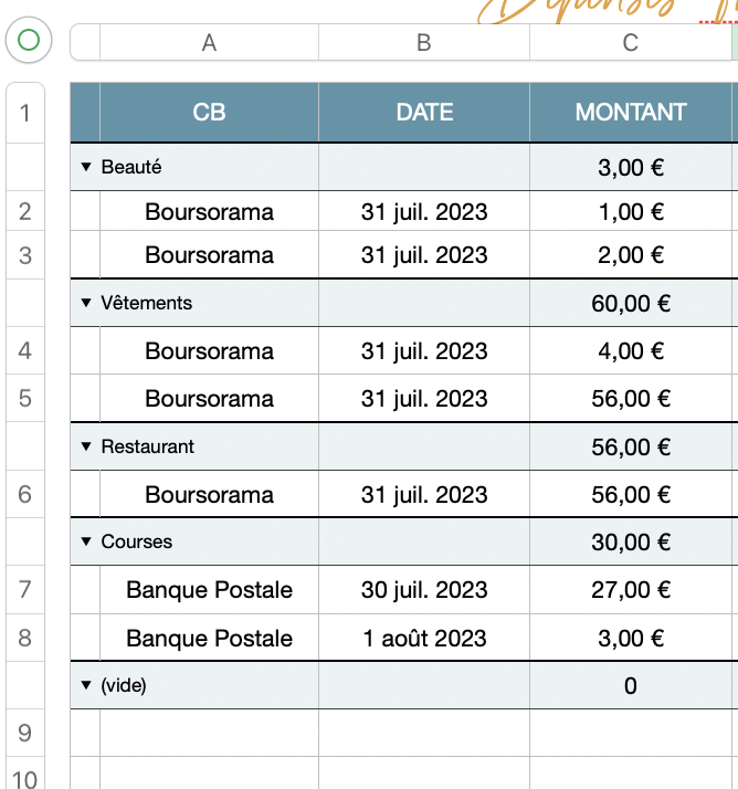 Je suis en train de créer un tracker de mes dépenses mensuelles sur Numbers. Cependant, je jongle avec 2 CB (une pour les frais fixes, une autre pour les dépenses liées aux loisirs).
