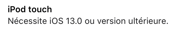 De plus, en jetant un œil à la page Radio Classique dans l’App Store, je vois que l'app demande au minimum iOS 13 pour pouvoir être installée :