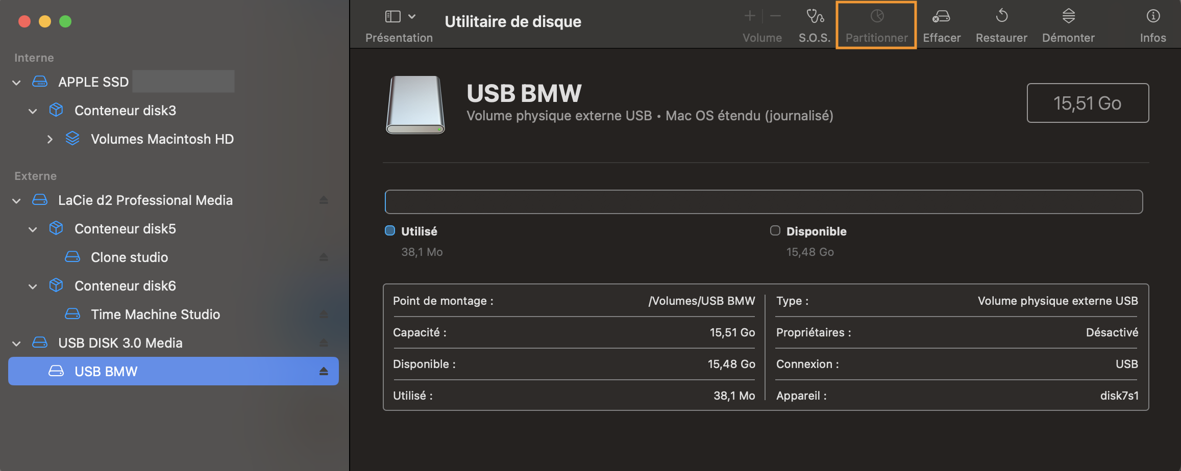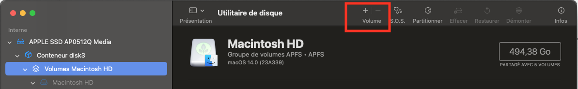 Quant au partitionnement, non justement avec le format APFS ce n'est pas nécessaire, comme je le précisais plus haut, il suffit d'ajouter un nouveau volume au conteneur.
