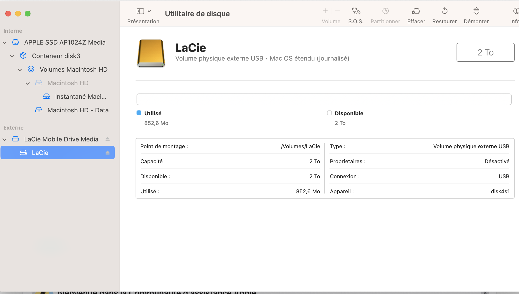 J'ai formaté le disque externe avec l'utilitaire fourni par le constructeur (LaCie-Seagate) et je n'ai pas eu accès à certaines fonctions (APFS, GUID)