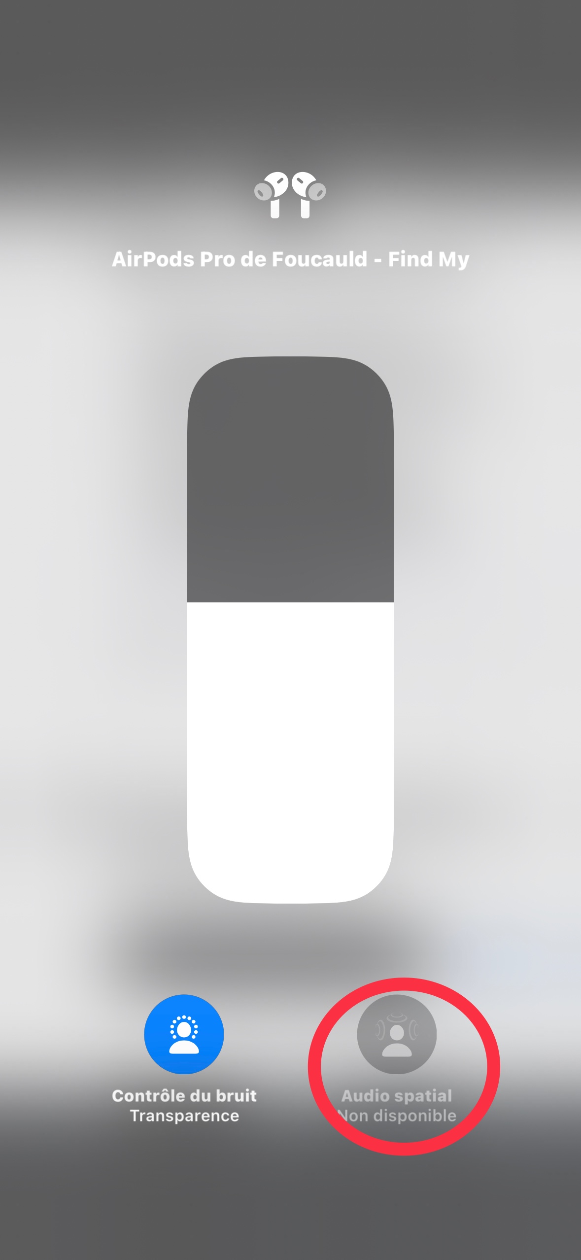 Je n'utilise pas du tout l'audio spatial personnalisé avec mes AirPods Pro, j'ai du mal à me faire à la sensation, j'avoue 🙈. Cependant, j'ai quand même fait un test de mon côté avec l'app Musique (qui est compatible) et j'ai remarqué une petite chose : après avoir mis les écouteurs dans mes oreilles, mais avant d'avoir ouvert l'app Musique, mon iPhone me montrait exactement comme toi, l'icône Audio spatial était grisé. Cependant, après avoir lancé une musique, en revérifiant dans le centre de contrôle, l'icône était alors active !
