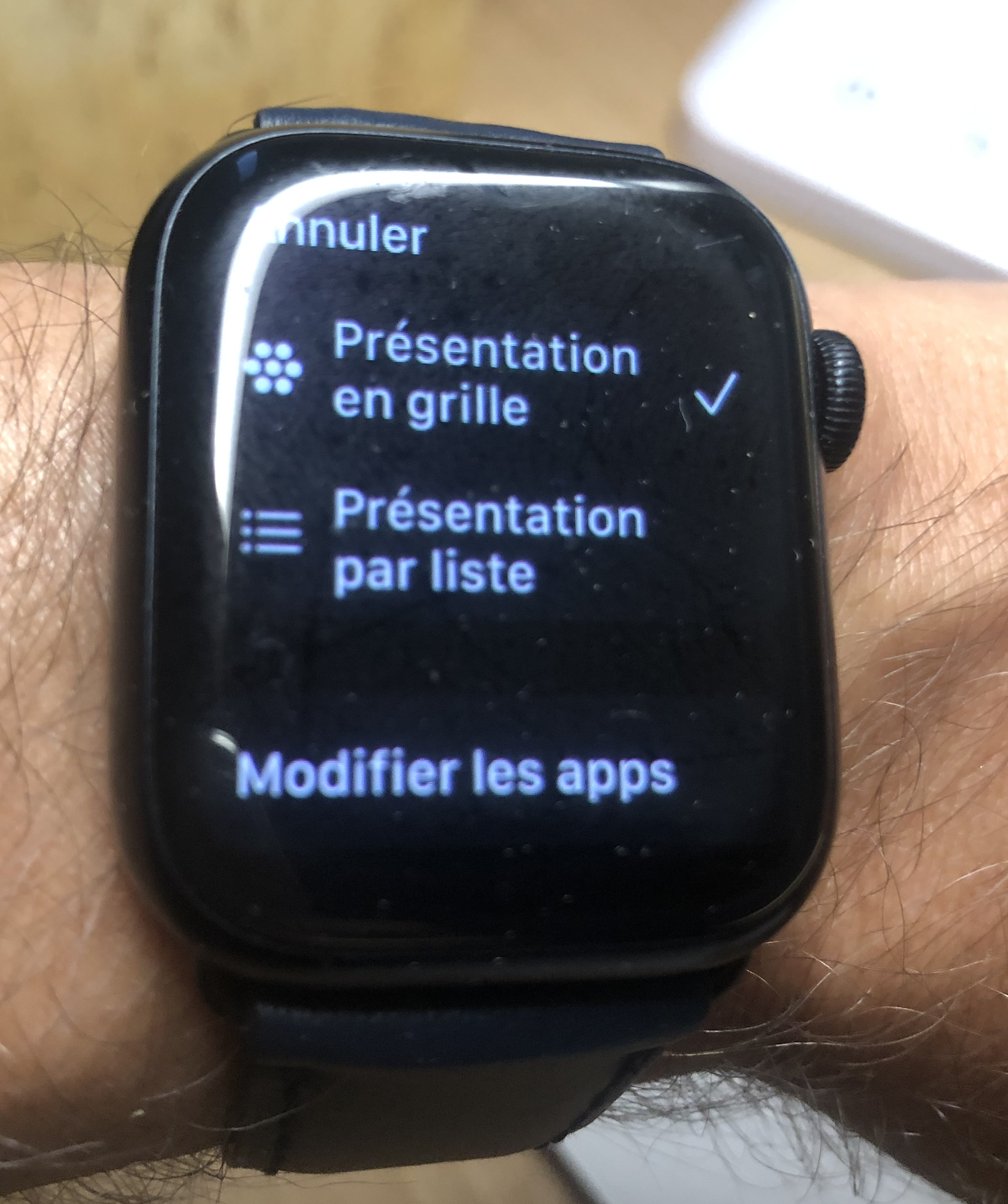 Bonjour, je suis bloqué sur l'écran "Modification de présentation" de mon iWatch. Je ne peux pas revenir en arrière en appuyant sur "Annuler" ni valider la modification en appuyant sur "Modifier les apps". Est-ce que quelqu'un a eu déjà ce problème ? Comment puis-je sortir de cet écran sans réinitialiser iWatch ? Merci beaucoup.