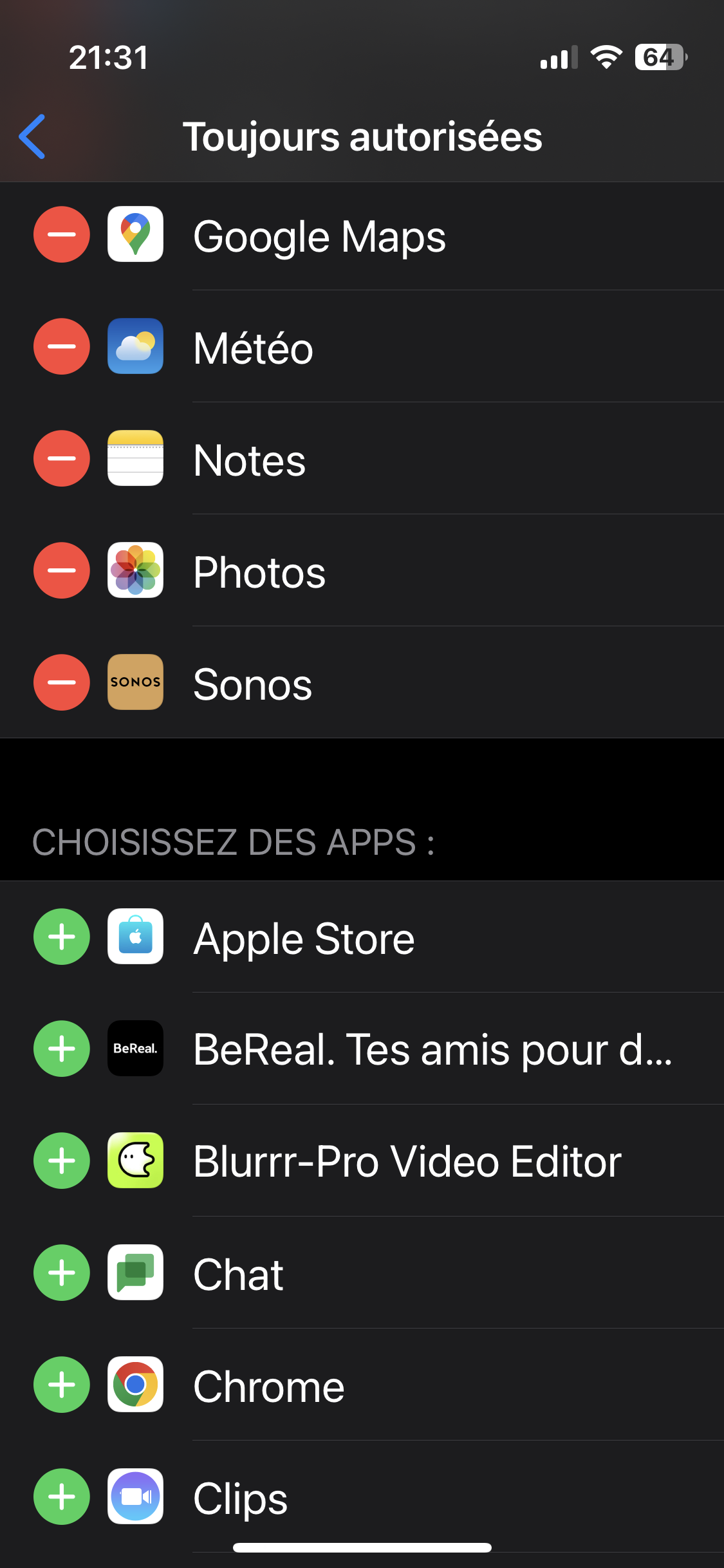Exemple : Instagram, tik tok, be real et Snapchat ne sont pas impactes alors qu’ils ne sont pas dans les apps toujours autorisées.