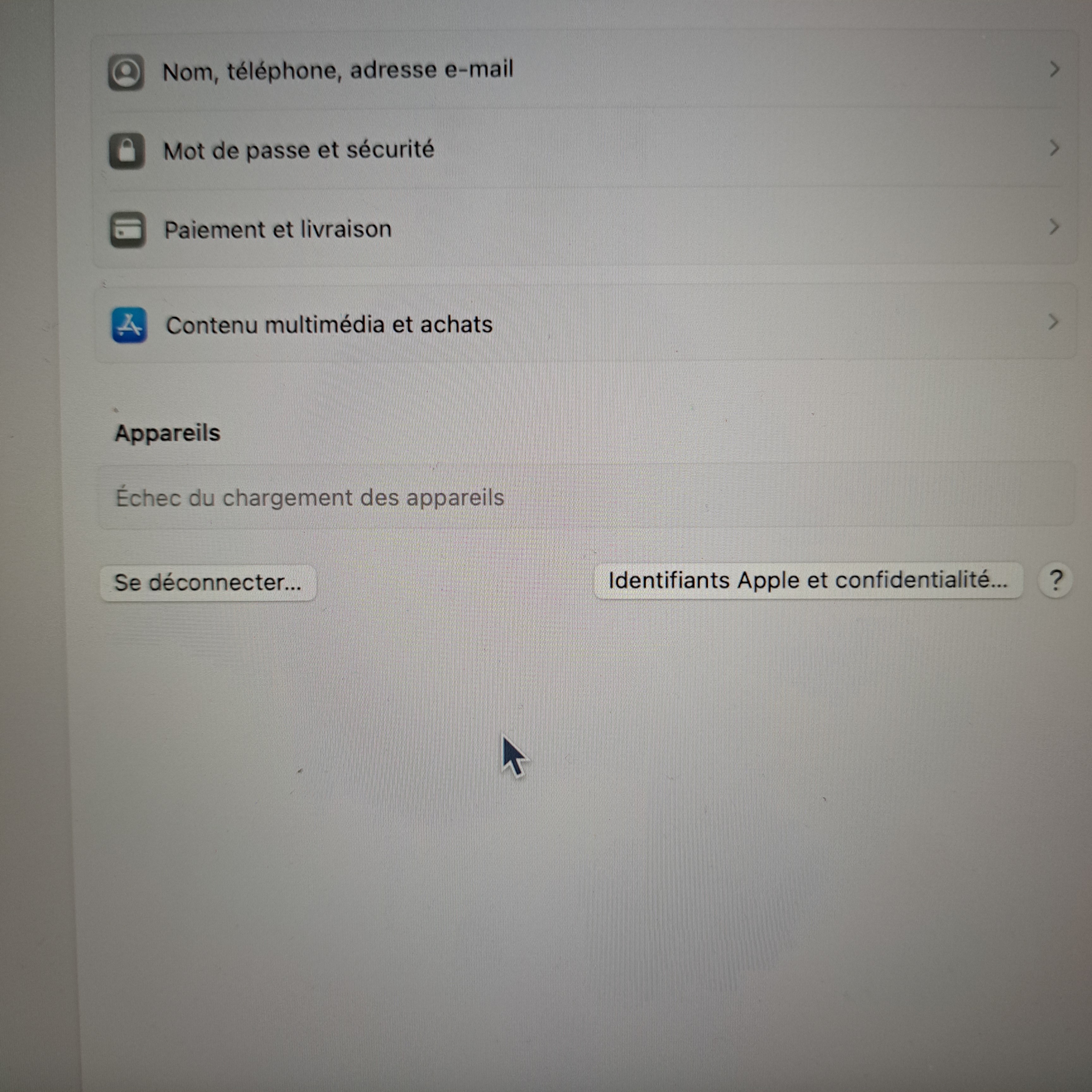 Par contre, je suis dubitative devant le message "Échec du chargement des appareils" qui apparaît.