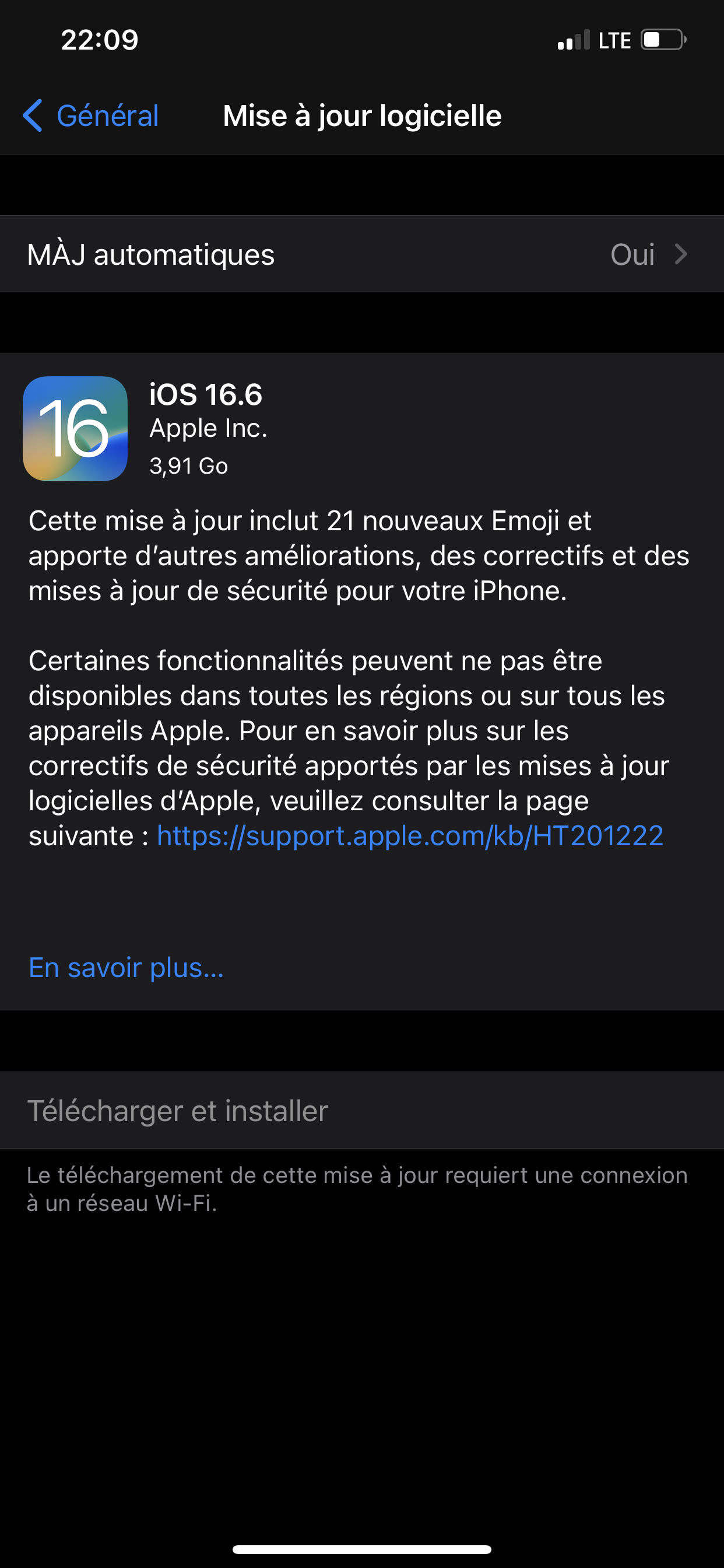 Votre capture d'écran indique que le téléchargement requiert une connexion Wi-Fi. Connectez-vous à un réseau Wi-Fi pour que le téléchargement et l'installation puissent continuer.