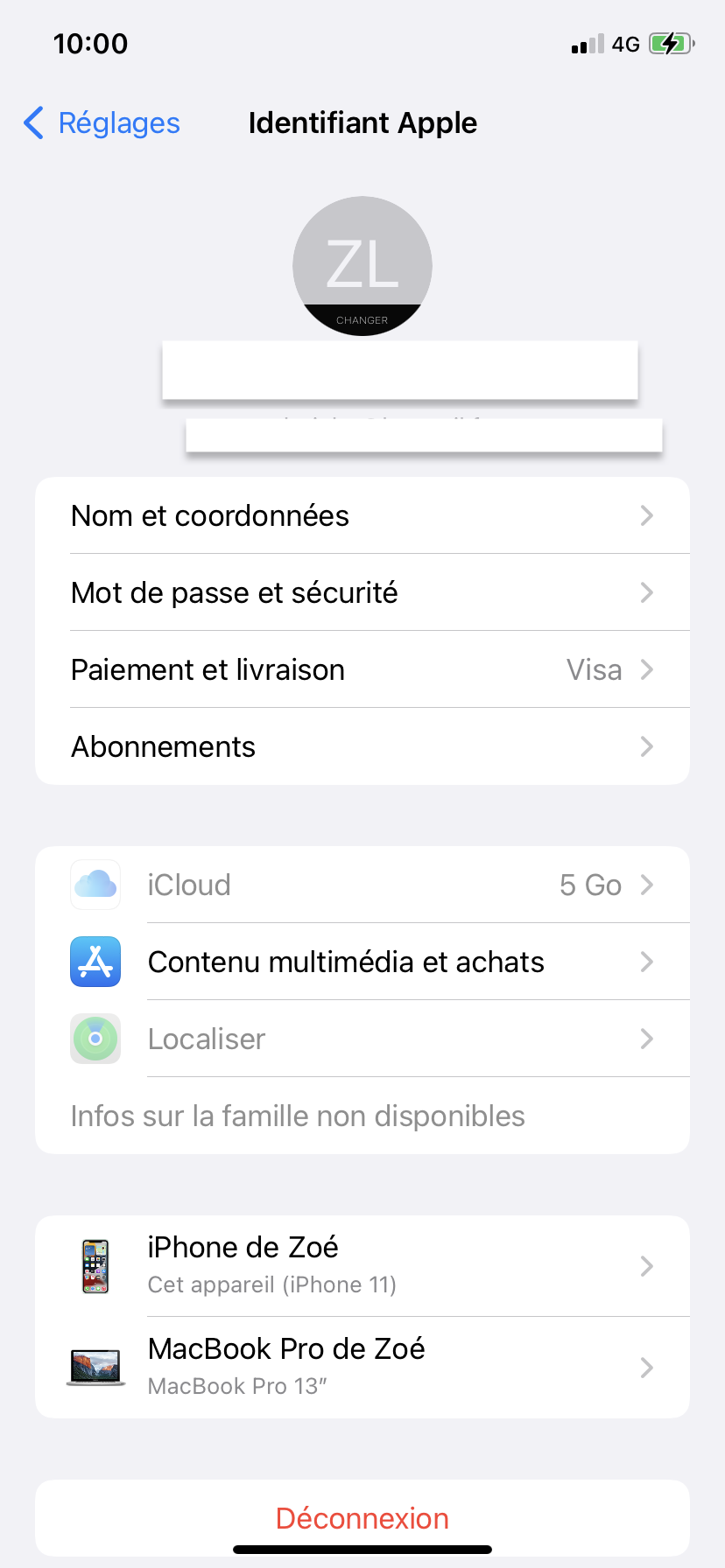 Pourrais-tu s'il te plaît cliquer sur "Déconnexion" en bas de la capture d'écran, puis te reconnecter à ton compte iCloud ? Une fois que tu auras effectué cette étape, pourrais-tu réessayer d'accéder à iCloud ?