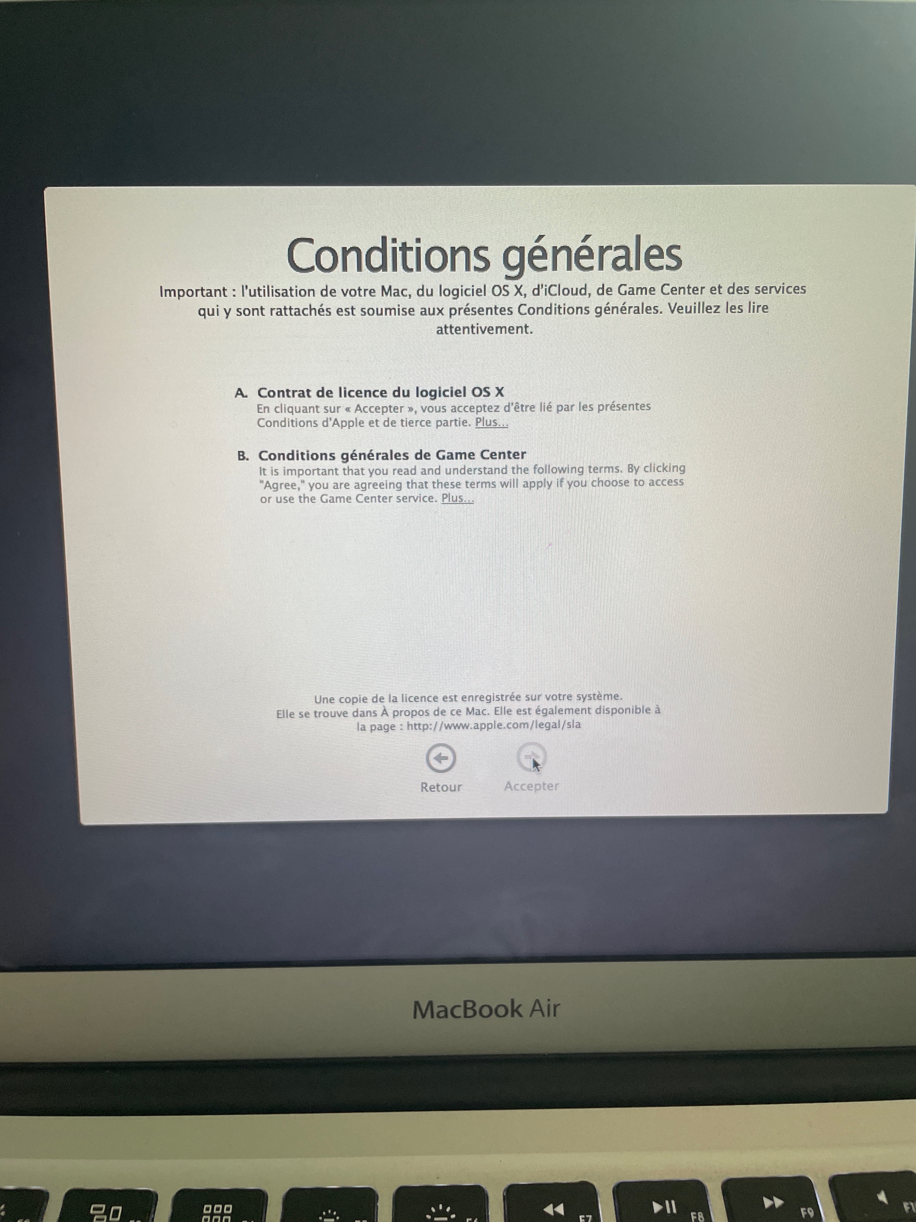 Je suis Jules, et je suis là pour t'aider. Il semble que tu rencontres un problème pour valider les conditions générales d'utilisation après avoir réinitialisé Mac OS. Si tu te trouves bloquée à cette étape, voici une astuce que tu peux essayer :