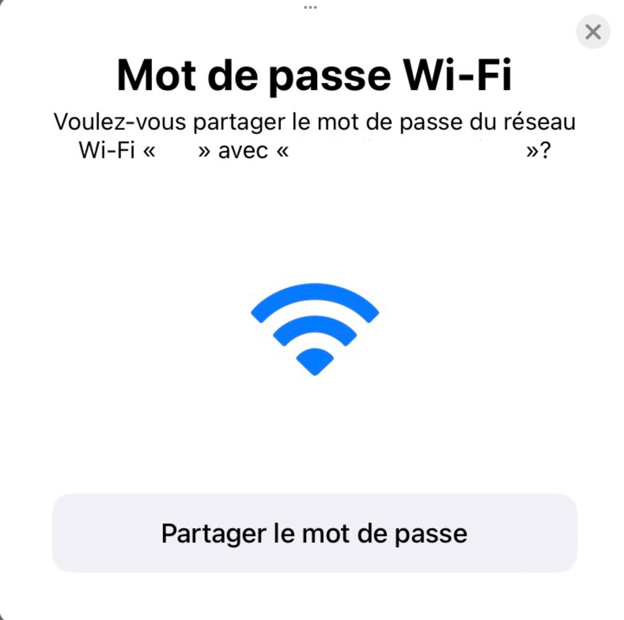 Comment désactiver cette fonction qui est à répétition, excessive même, malgré le partage du mot de passe fait? Partage du mot de passe de votre réseau Wi-Fi à partir de votre iPhone, de votre iPad ou de votre iPod touch – Assistance Apple (CA)