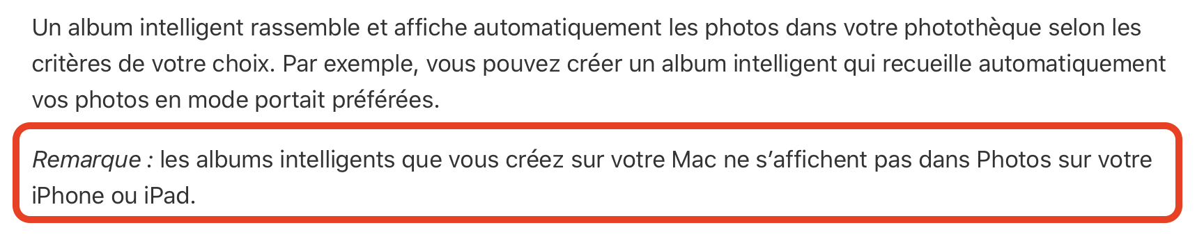 L'article Créer des albums intelligents pour rassembler des photos automatiquement dans Photos sur Mac - Assistance Apple (FR) le dit clairement.