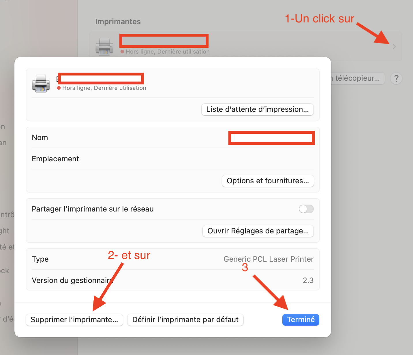 Dans les Réglage système -> Imprimantes et numériseurs retirer l'imprimante