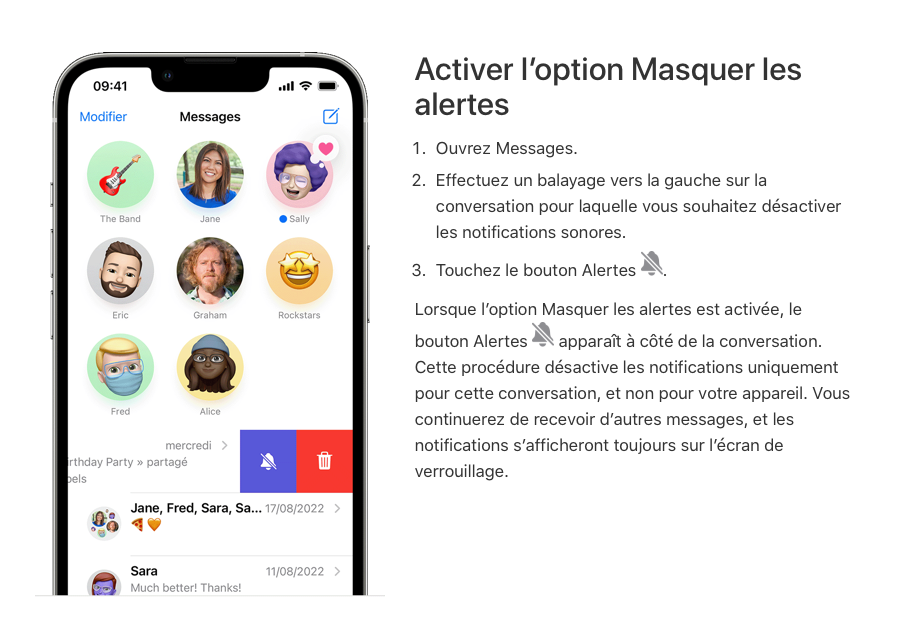 L'article Utiliser l’app Messages sur votre iPhone ou iPad - Assistance Apple (FR) te donne plus d'informations à ce sujet.