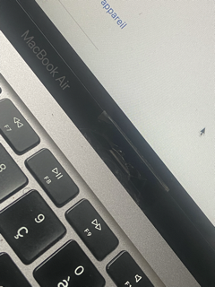 Au niveau du bas de l'écran ou il est écrit MacBook Air, il a une fissure et une partie de mon écran c'est enlever environ 3cm de longueur et 4 cm de largeur cela na pas toucher l'écran principal il a toucher que la bande noir en bas de l'écran MacBook Air. J'aimerais avoir une estimation du prix de réparation si possible, Merci.