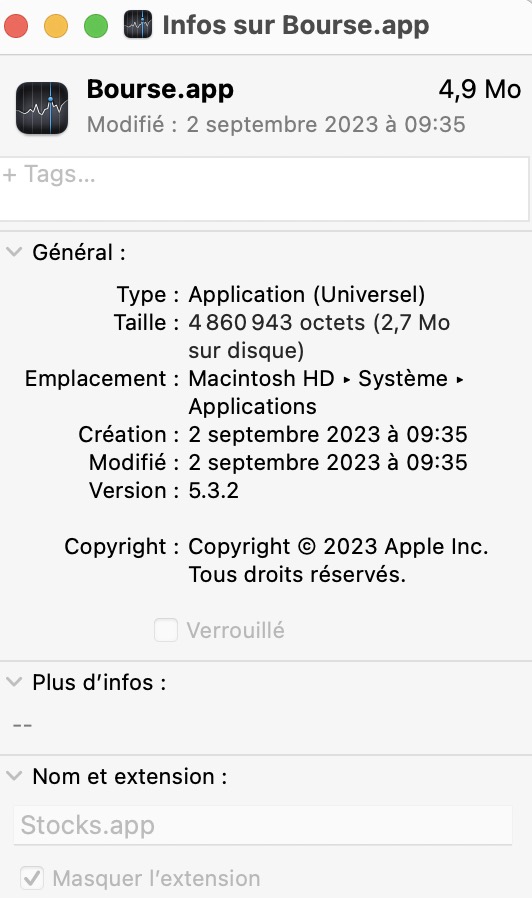 Il n’est pas possible de supprimer les applications Apple telles que Bourse ou Échecs. Ces applications sont protégées par le système d’exploitation macOS.