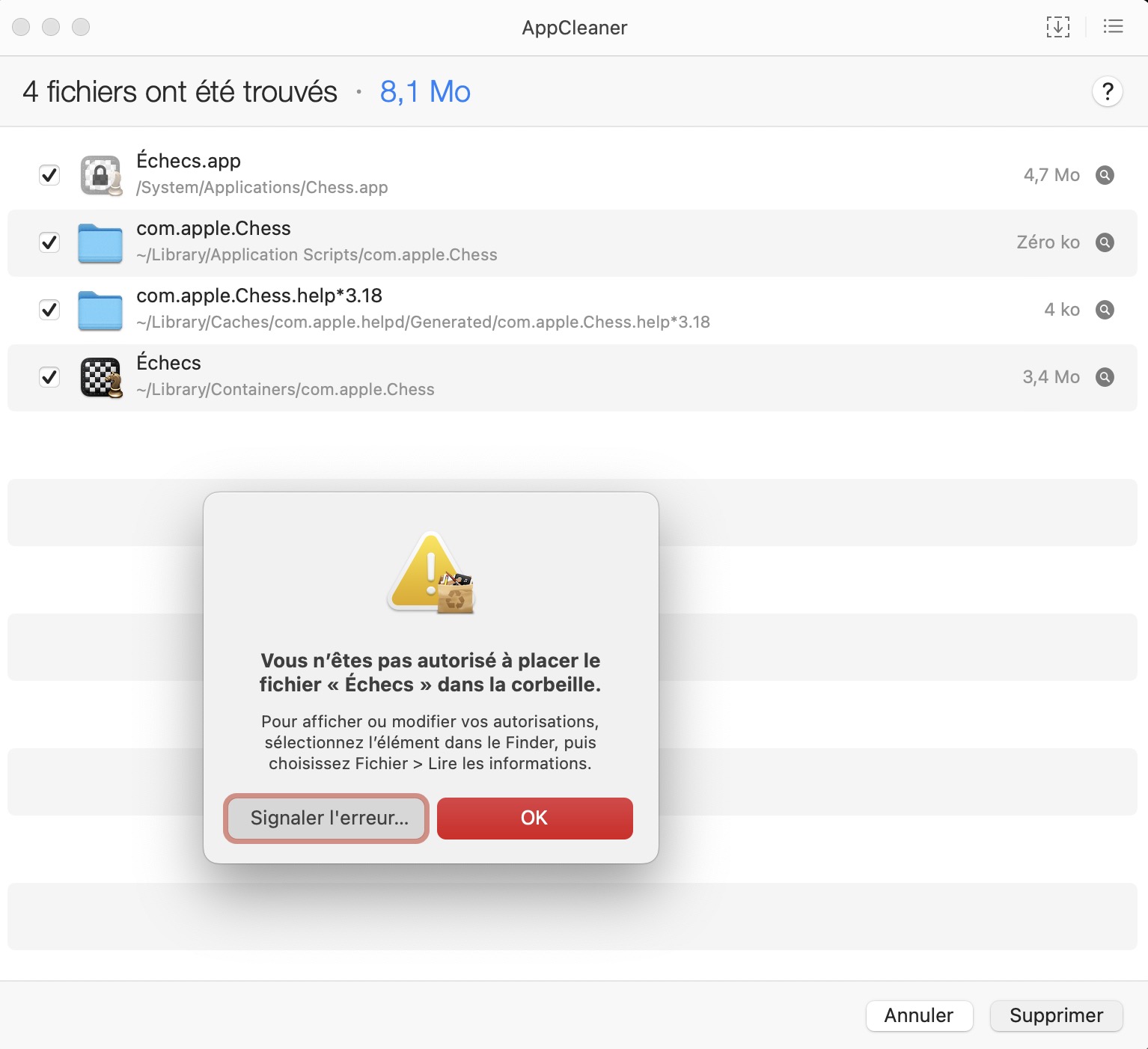 Il n’est pas possible de supprimer les applications Apple telles que Bourse ou Échecs. Ces applications sont protégées par le système d’exploitation macOS.