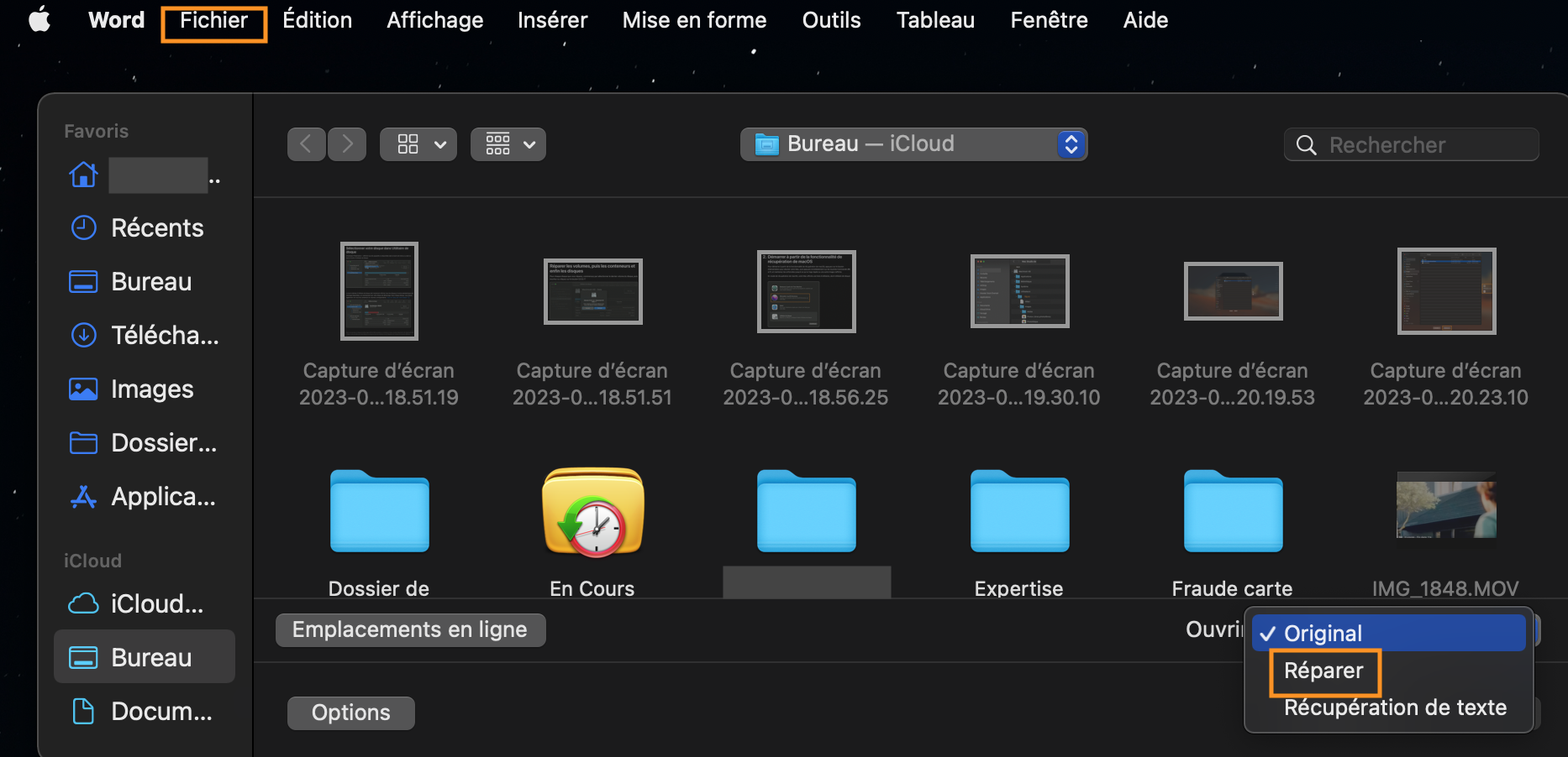 Tu n’as aucune version du dossier Word enregistrée en local sur ton Mac ?