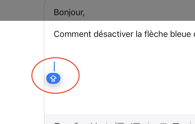 Comment désactiver la flèche bleue qui s'affiche à l'écran lorsque le verrouillage majuscule est actif.