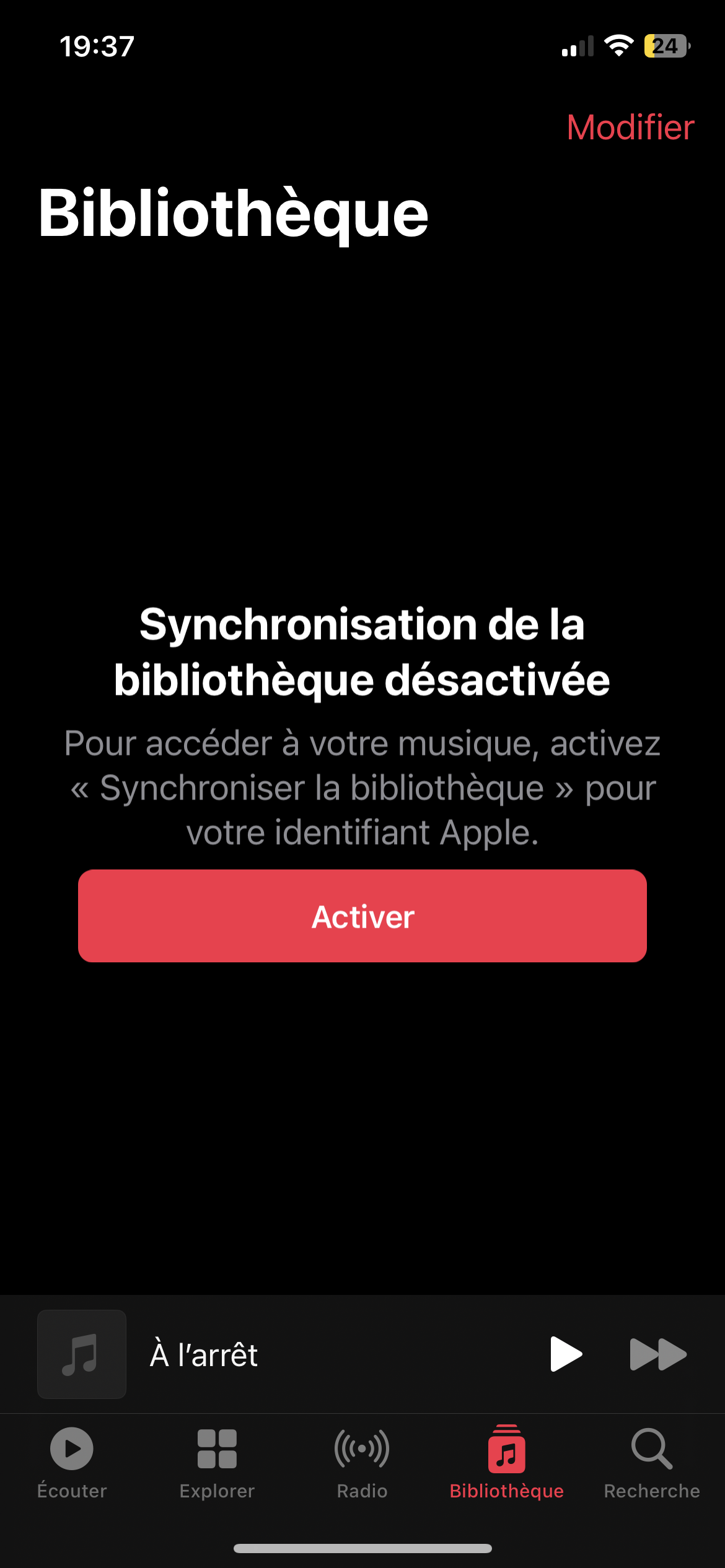 Bonjour j’ai par erreur supprimé mon application Apple music et j’ai du coup plus aucune de mes playlist sur mon tel le problème c’est qu’on me dis de synchroniser ma bibliothèque mais la synchronisation prend bcp trop de temps je pense que ça marche pas