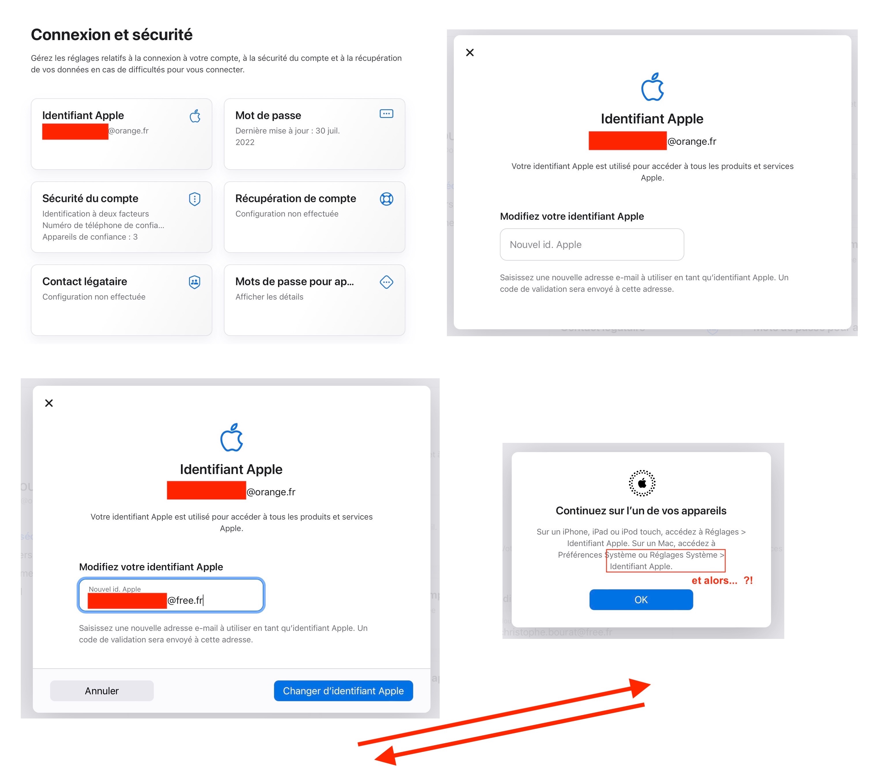 La procédure de modification reste "bloquée" en me demandant de continuer sur un de mes appareil.