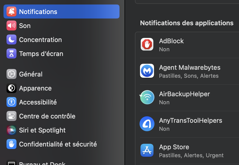 L'important si tu ne souhaites pas certaines notifications, est de décocher celles dont tu ne veux pas.