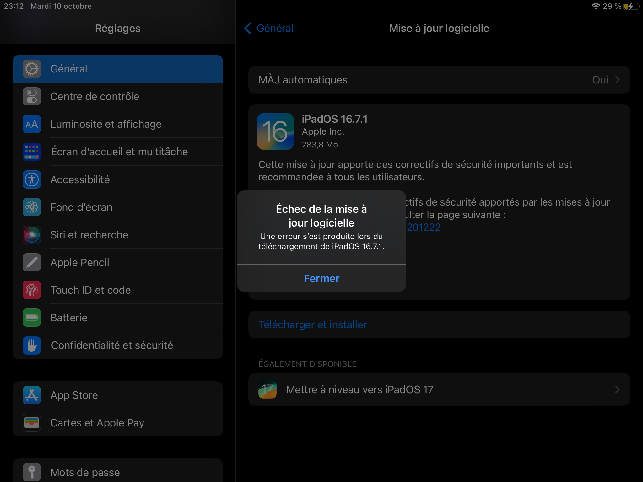 Bonjour ma tablette iPad veux plus faire les mises a jours ça marque erreur