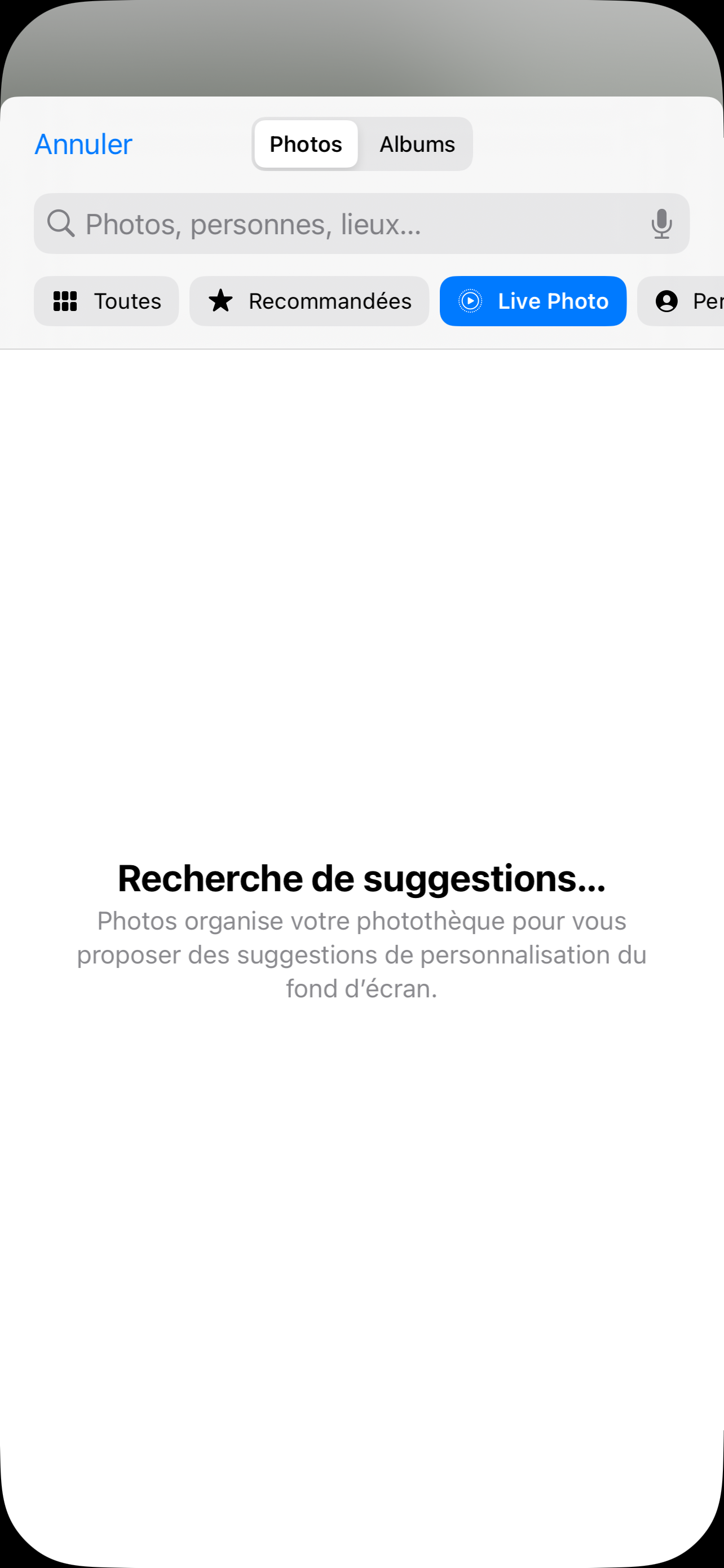 Je t'avoue que je n'avais pas remarqué qu'il était possible de mettre à nouveau des Live Photos comme fond d'écran 🙈. Du coup, j'ai fait un petit test de mon côté, et j'ai bien les suggestions de Live Photos.