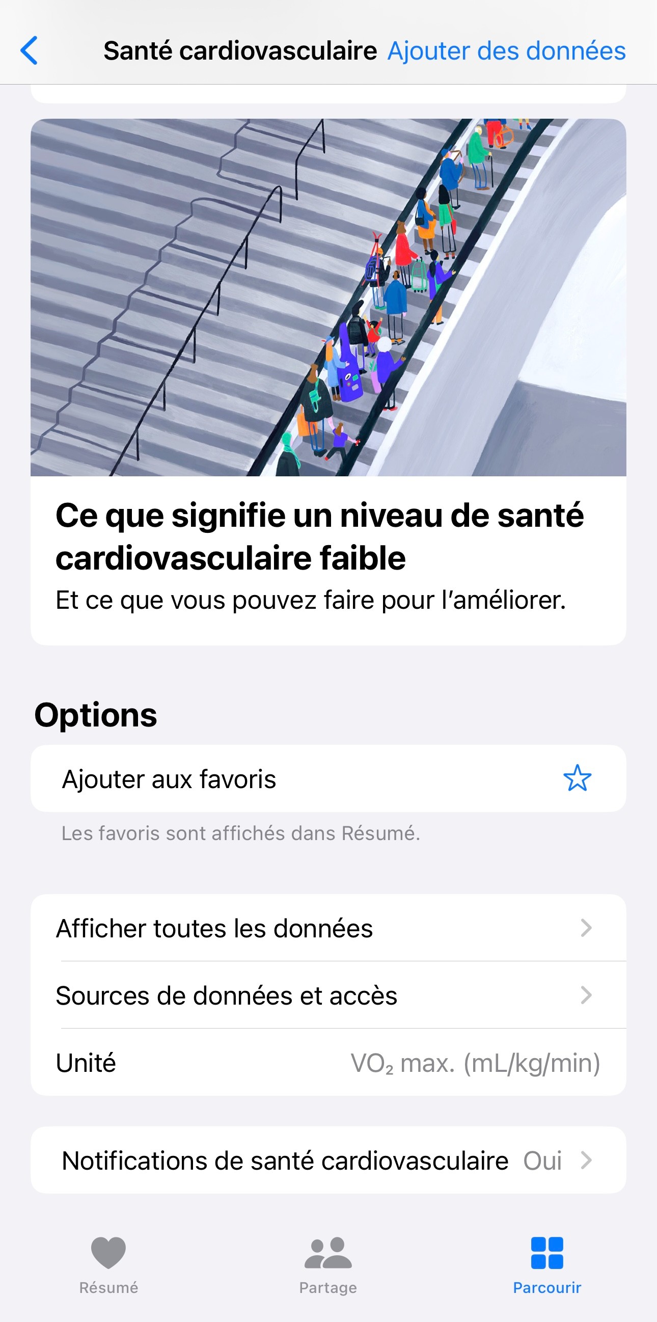 Ajout source de données et accès santé cardiovasculaire VO2max impossible