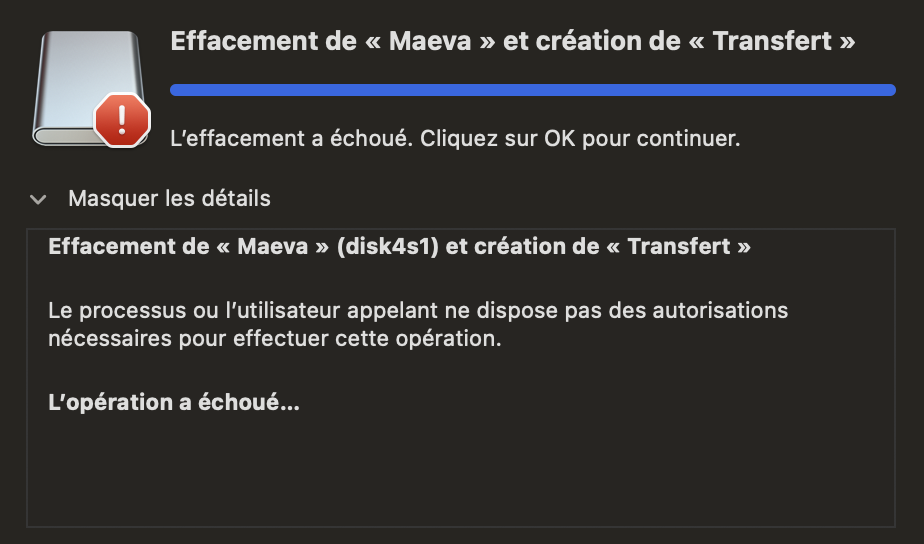 Bonjour, comment forcer mon mac studio à accepter le mode lecture/écriture sur mon disque principal ? Il admet seulement pour le système (défaut) et refuse tout autres manipulations me disant que je ne possède pas les droits ??? Je ne l'utilise qu'en mode administrateur, pas d'invité ni de partage.