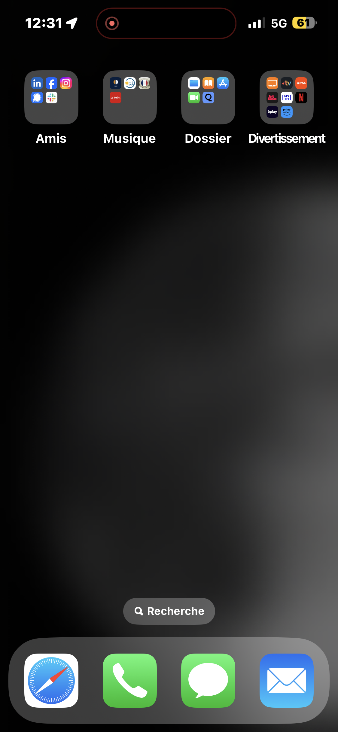 Si tu tapes sur le Dynamic Island, ou sur le cercle rouge, est-ce qu'une app s'ouvre ?