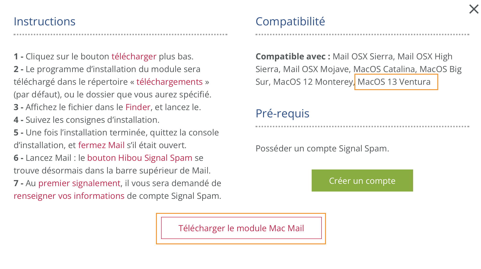 Sur Mail on ne trouve pas encore la MAJ de signal spam.