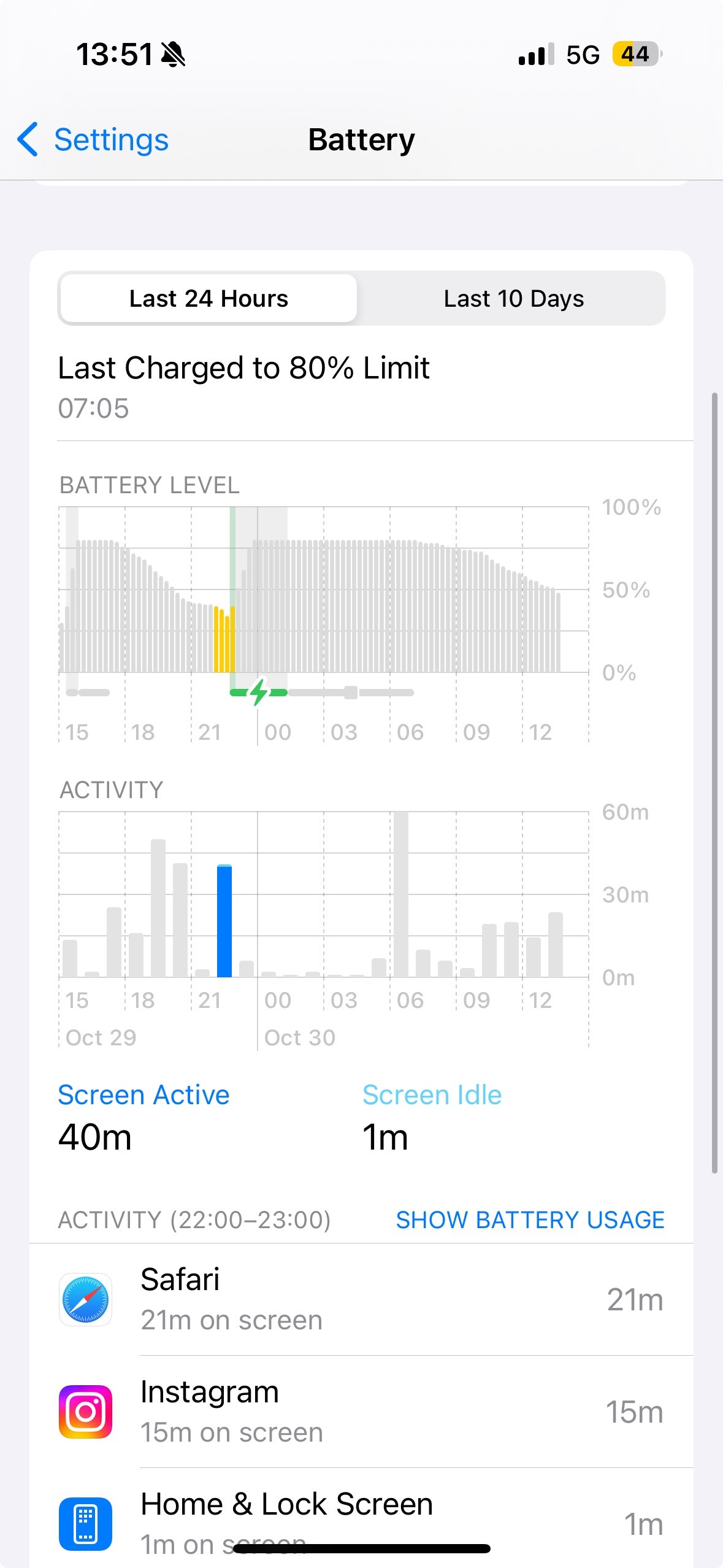 Autrement, la capture d'écran que tu partages ne montre qu'une toute petite période d'utilisation, tu as sélectionné la plage entre 22h et 23h, et également à un moment où ton iPhone était à charger, donc je t'avoue que la photo n'est du coup pas très parlante par rapport à la situation que tu rencontres 🫣.