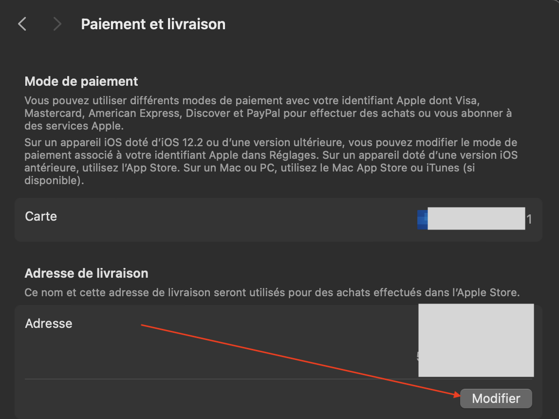 sur ma facture iCloud mensuelle, mon adresse est fausse.
