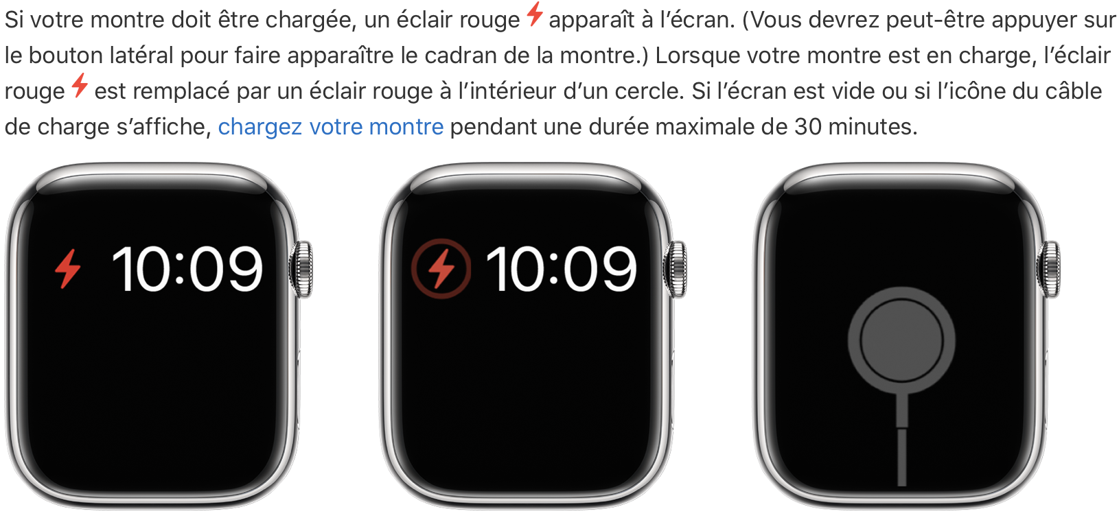 sur l'écran j'ai en forcant sur "le crown" juste l'heure et le signe de charge en rouge